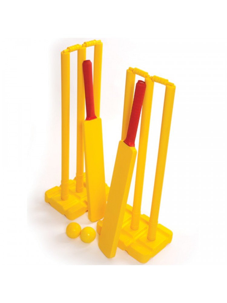 - Plastic cricket set contains 1 Bat, 3 Stumps & 1 Pair of Bails, 1 Stumps stand and 1 Wind ball